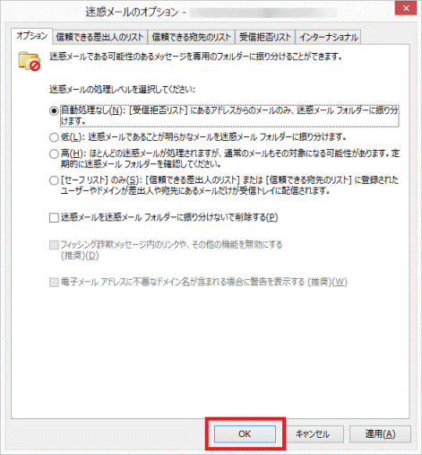 富士通q A Outlook 2013 迷惑メールをブロックする設定を教えてください Fmvサポート 富士通パソコン